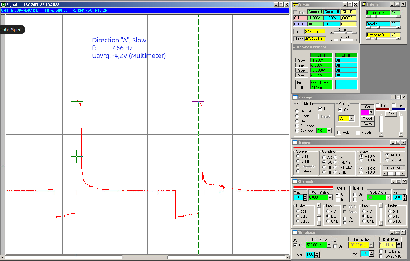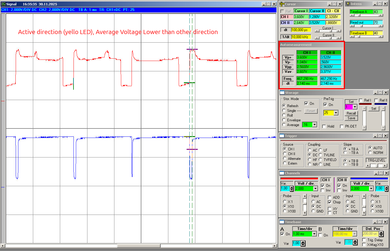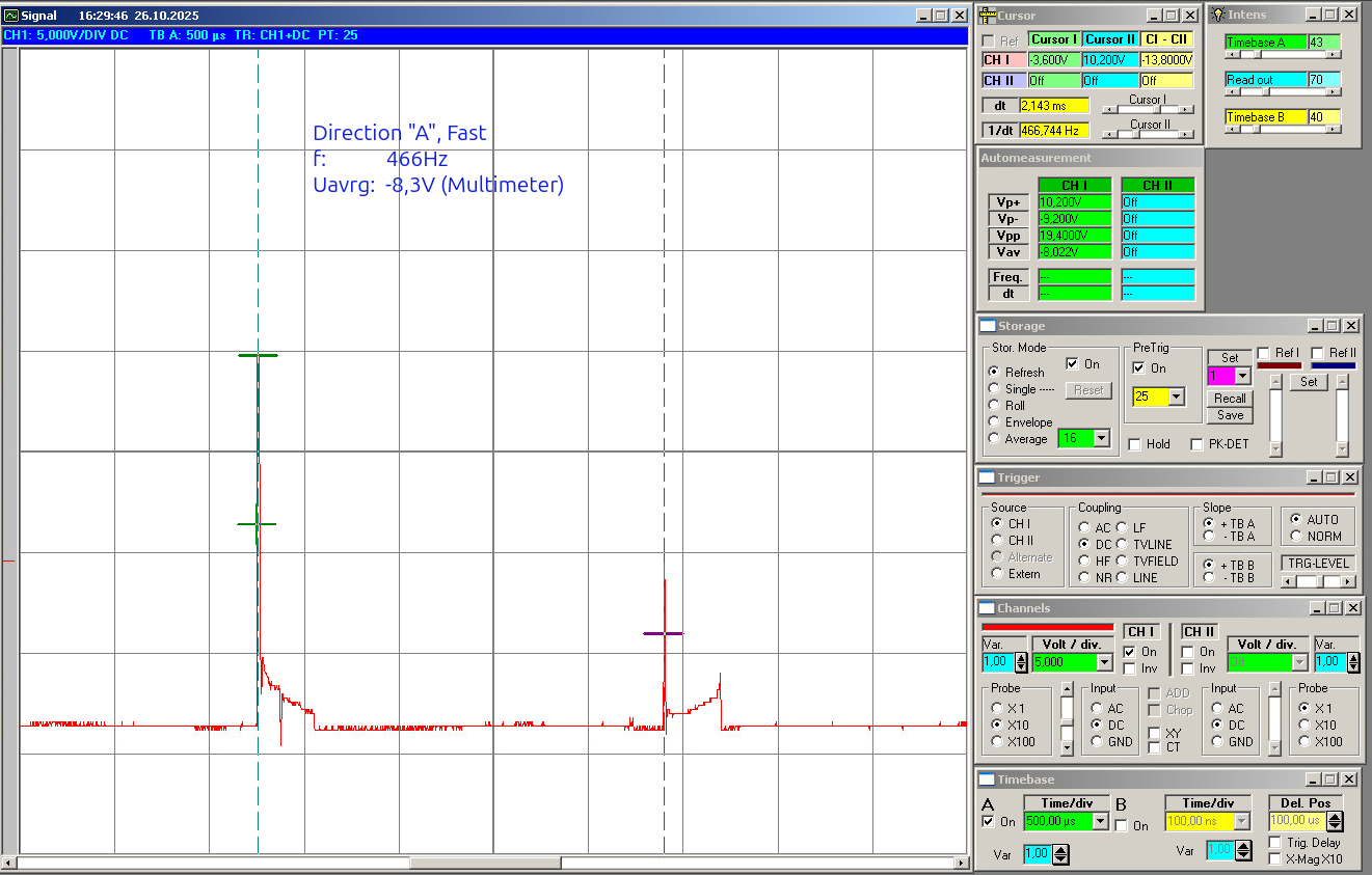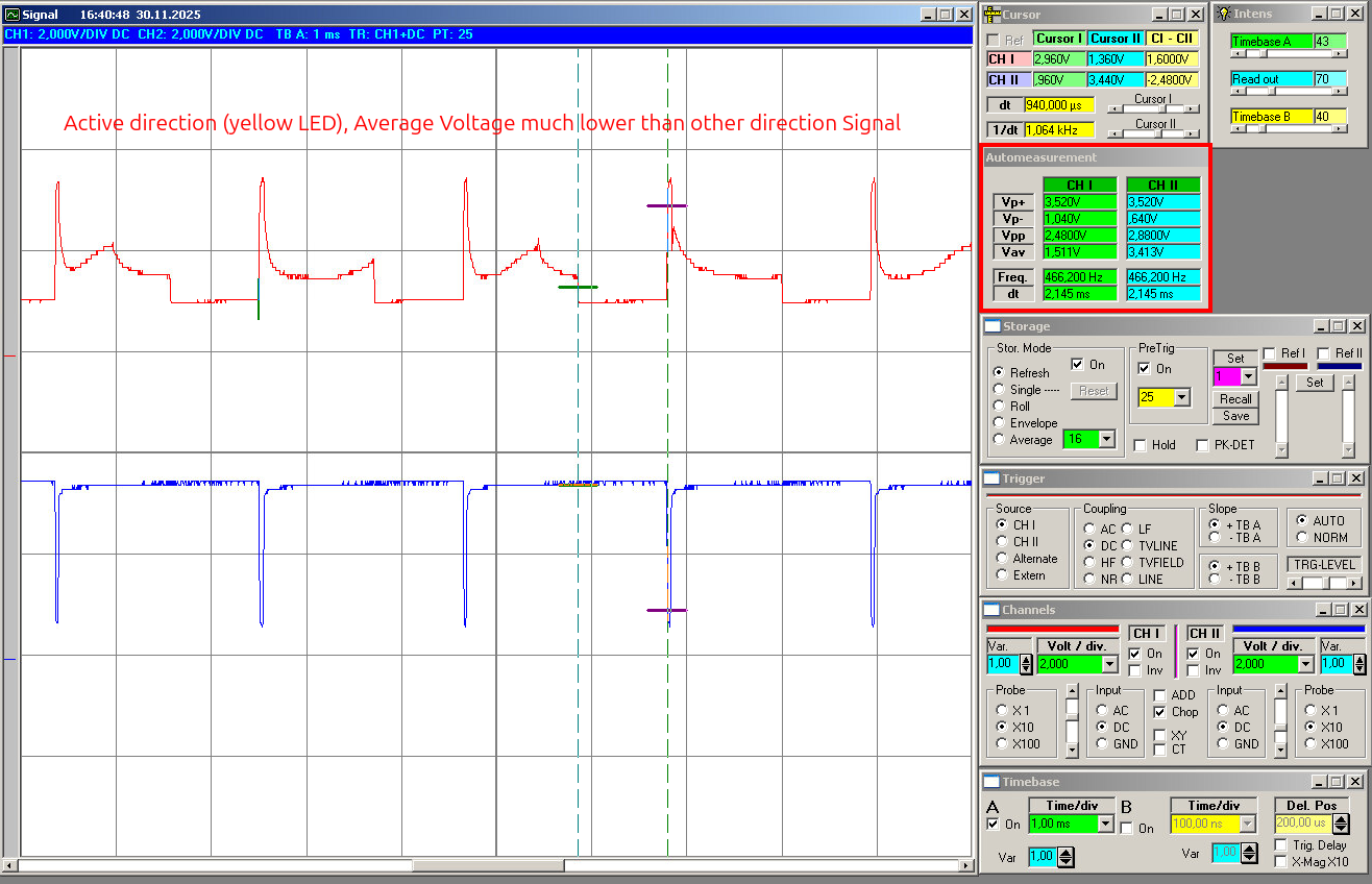 This gives the natural mismatch between both channels when no real direction decision should happen yet. Because even in the idle case both channels are usually not perfectly identical, the software does not assume zero. Instead, it measures the real baseline. The measured values are sorted, and then the median is taken: